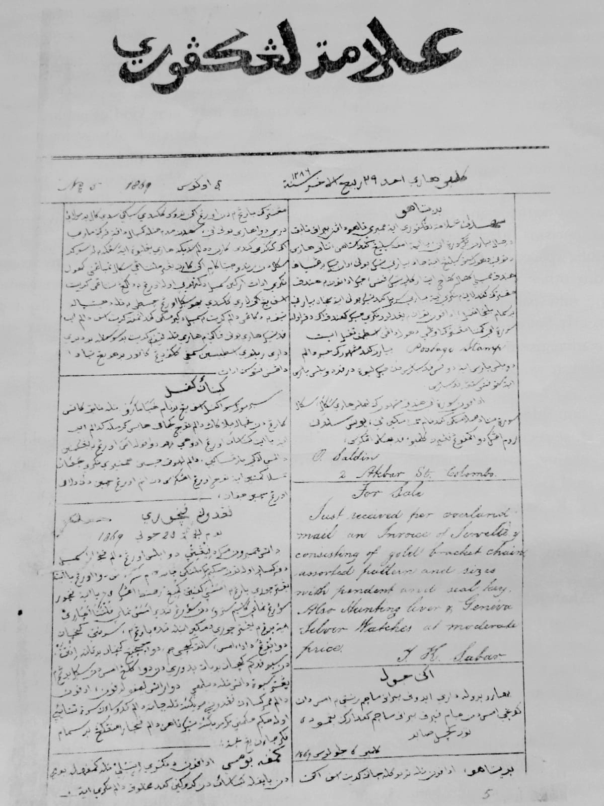 Ricci mengemukakan bahwa koran ini dididirikan dan diterbitkan oleh Baba Ounus Saldin (1832-1906). Ia merupakan seorang figur kunci yang melingkupi hidupnya dengan tulisan,